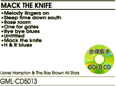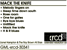 GML 1989 年經典錄音以最佳音效面世,兩大爵士天王同台演出,Lionel Hampton 之鋼片琴與 Ray Brown 之低音提琴合作演譯多首爵士經典作,音色通透,動感強烈,牛筋之份量更令人一聽難忘。 |